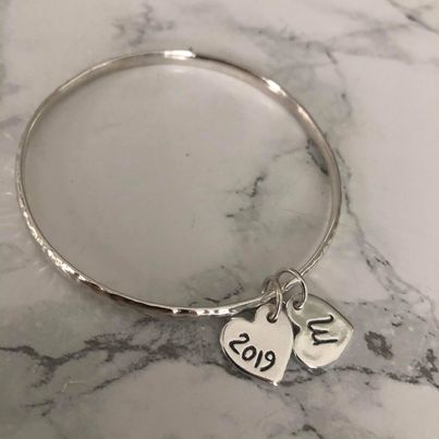 Sterling silver bangle measuring 6.5cm wide. Mini charms are approx 12mm and can have a short name, year or initials on the reverse. Once your order has been placed a print kit is posted for you to take the prints and return them in the prepaid envelope.