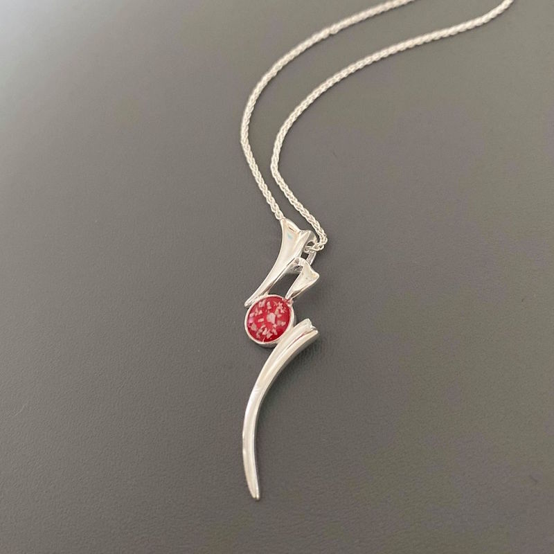 Sterling silver pendant, longest point measuring 38mm, stone area measuring 6mm across. All pendants are supplied with an 18inch chain but if you would prefer 16, 20 or 22 inches please note this at checkout or on your order form in your ashes pack.