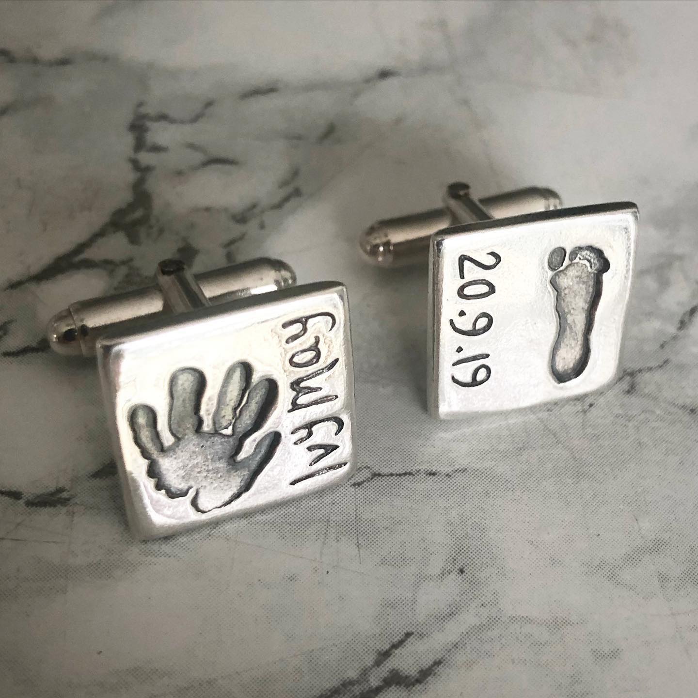 Solid silver cufflinks with prints and engraving.